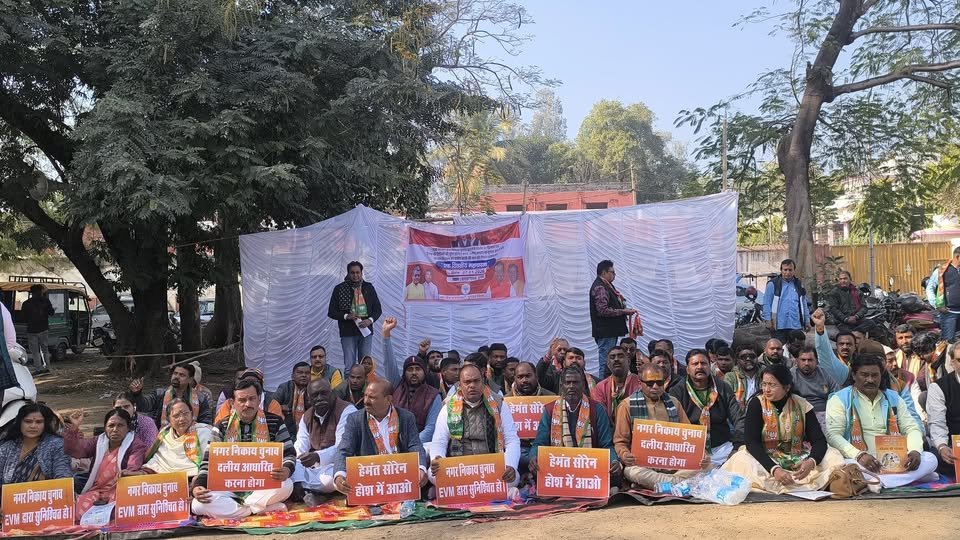 नगर निकाय चुनाव की मांग को लेकर दुमका में भाजपा का जोरदार धरना, सरकार पर लोकतंत्र कमजोर करने का आरोप