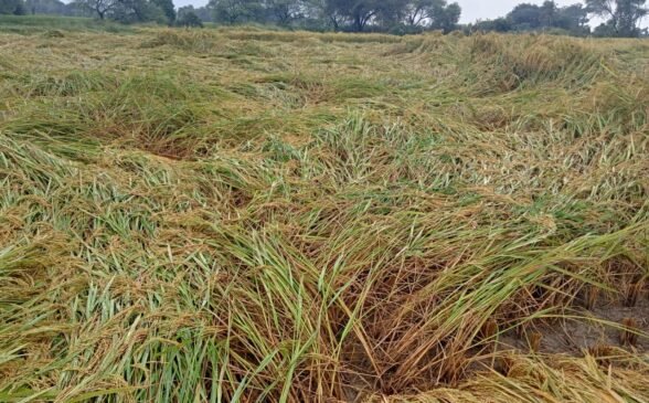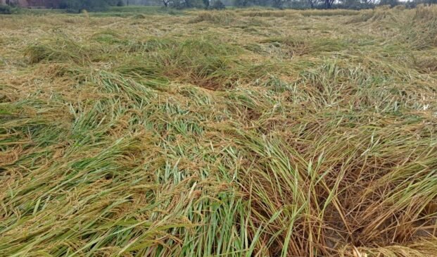 मेंथा के चक्रवात ने किसानों के अरमानों पर फेरा पानी, पकी धान फसलें हुईं धाराशायी।