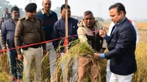बिहार राज्य फसल सहायता योजना के अंतर्गत प्रखंड जगदीशपुर के मौजा जगदीशपुर, थाना संख्या 418 स्थित खेसरा संख्या 1057 में अगहनी धान (कतरनी) फसल की कटनी प्रयोग (क्रॉप कटिंग) का निरीक्षण जिला पदाधिकारी भागलपुर डॉ. नवल किशोर चौधरी ने किया।